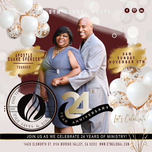 We invite you to join us on Sunday, November 9th @8AM, as we celebrate our ministry's 24th Anniversary.